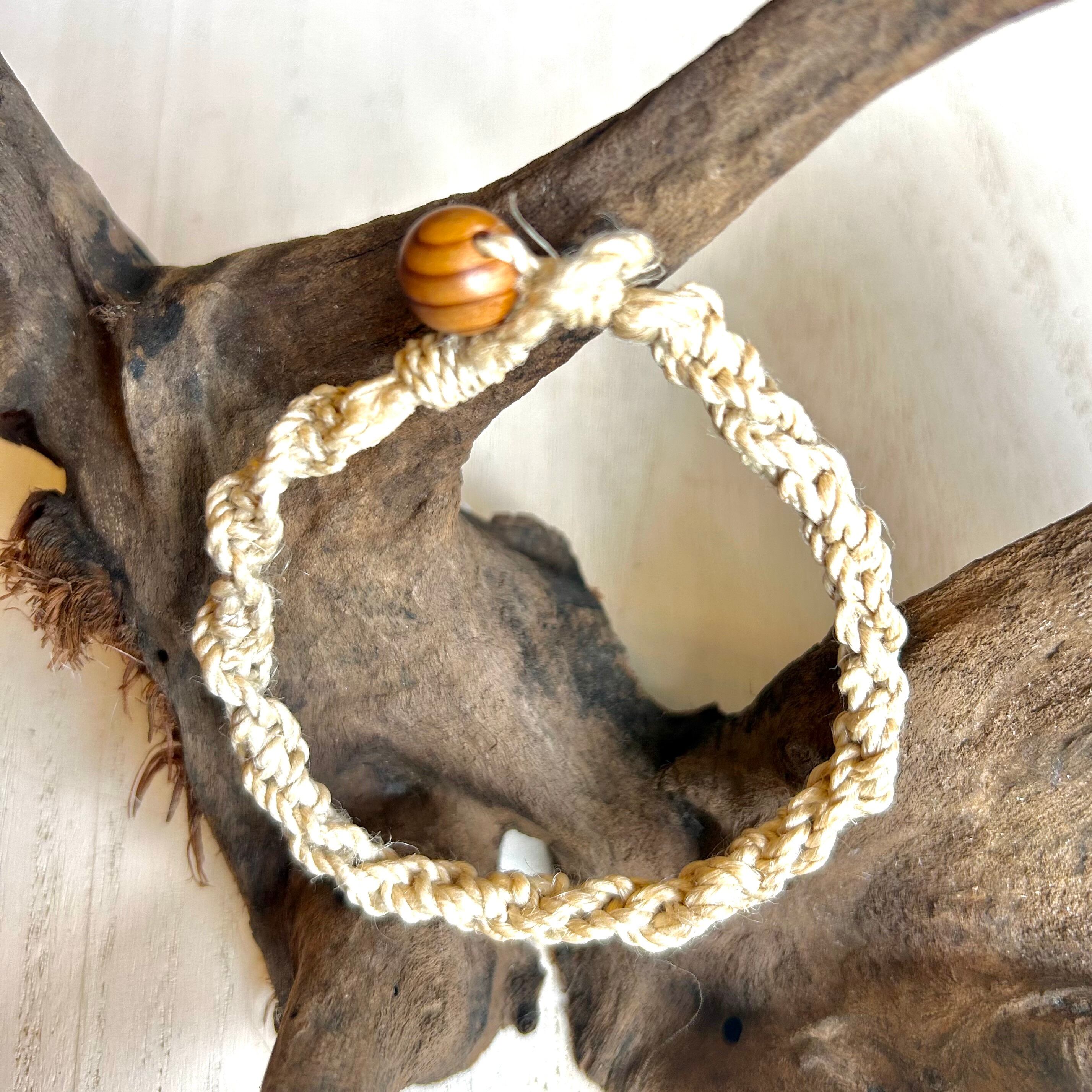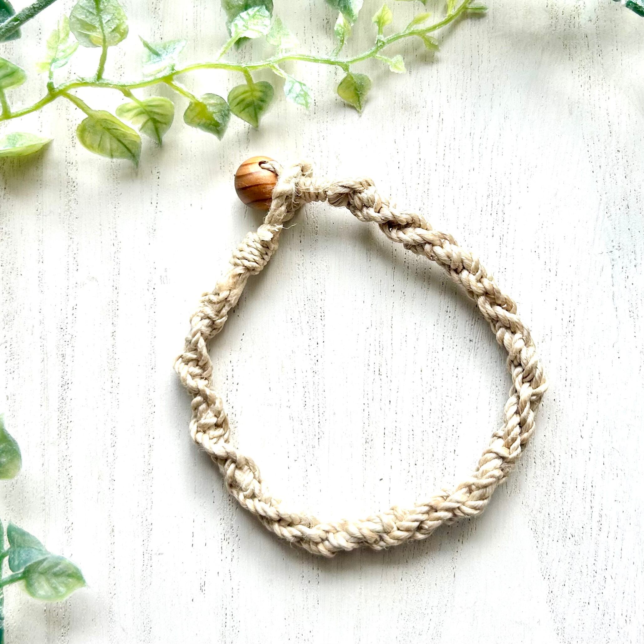 穢れを祓うパワーが強いとされる神聖な植物の精麻と、古来より「神宿る木」とされる屋久杉のビーズを使ったブレスレットです